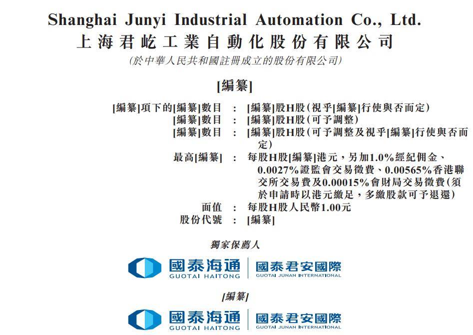 据港交所1月23日披露,上海君屹工业从动化股份无限公司(简称:上海君屹)向港交所从板递交上市申请书,国泰海通国际为其独家保荐人。