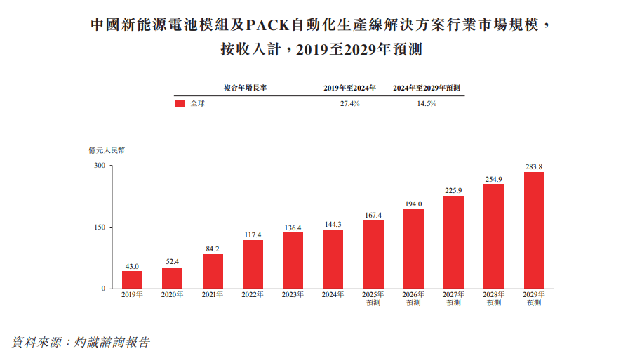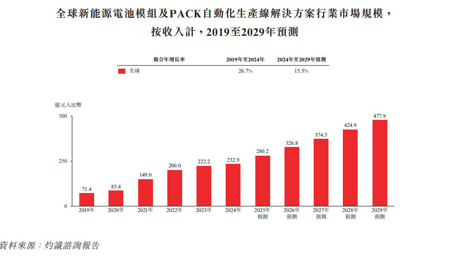 将来,受益于NEV保有量持续提拔、动力电池更新换代及新手艺线逐渐财产化,全球新能源电池模组及PACK从动化出产线处理方案行业估计将继续维持增加态势,至2029年市场规模无望达到人平易近币477。9亿元,自2024年至2029年的复合年增加率估计为15。5%。