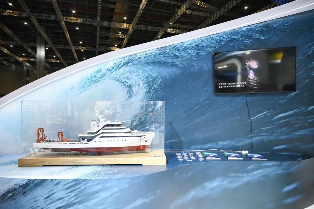 展区内一艘船模吸引了参不雅者的目光,这是依托海洋取地球科学学院办理运转的“同济”号智能海洋科考船。该船具备岸基遥控、自从航行、智能能效办理等焦点功能,以2000吨级平台实现3000吨级科考功课能力,可开展海洋地质、生态、大气等分析科考使命。将年均施行240天海上使命,支持国度严沉科技根本设备运维、国际大洋钻探研究及长三角高校涉海人才培育。